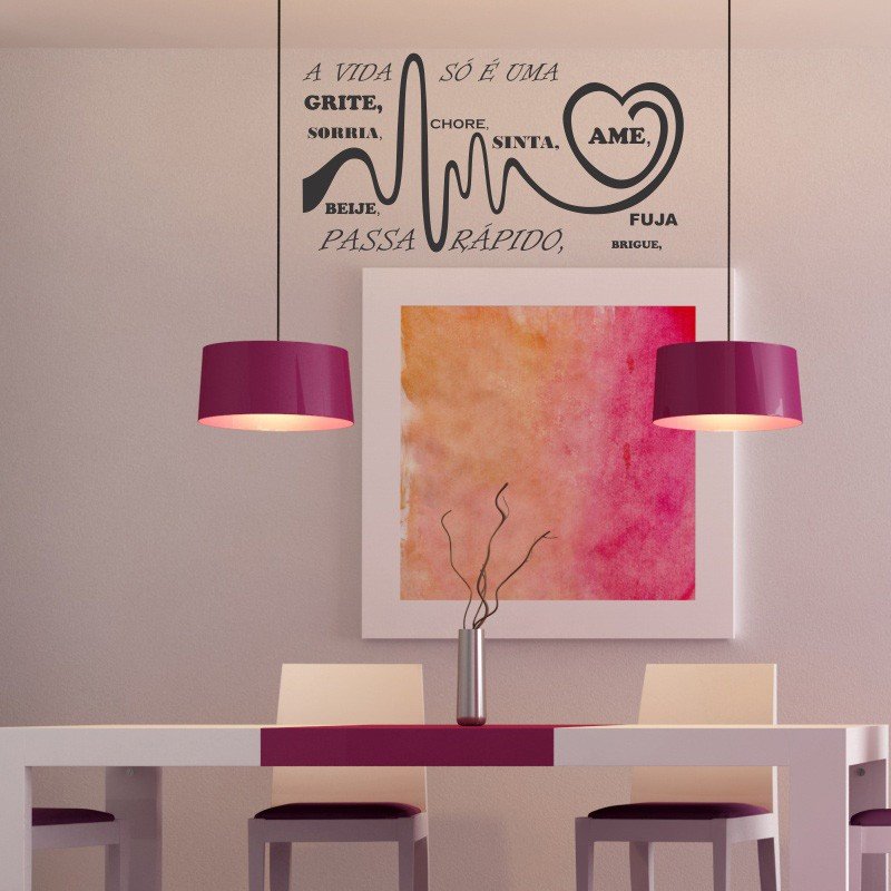 Este modelo, Adesivo de Parede A vida é uma só, pode ser usado em praticamente qualquer superfície lisa, pode ser utilizado para decorar quarto infantil, sala, sala de estar, sala de tv, cozinha, hall de entrada, quarto de casal, bar, espaço gourmet, cabeceira de cama, escritório, banheiro, box de banheiro, etc...