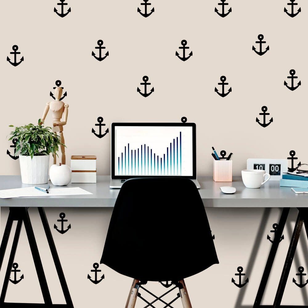 Este modelo, Adesivo de Parede Âncoras, pode ser usado em praticamente qualquer superfície lisa, pode ser utilizado para decorar quarto infantil, sala, sala de estar, sala de tv, cozinha, hall de entrada, quarto de casal, bar, espaço gourmet, cabeceira de cama, escritório, banheiro, box de banheiro, etc...