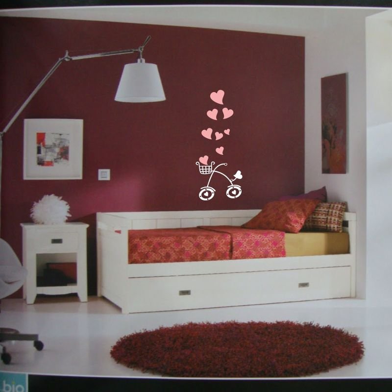 Este modelo, Adesivo de Parede Bicicleta Corações, pode ser usado em praticamente qualquer superfície lisa, pode ser utilizado para decorar quarto infantil, sala, sala de estar, sala de tv, cozinha, hall de entrada, quarto de casal, bar, espaço gourmet, cabeceira de cama, escritório, banheiro, box de banheiro, etc...