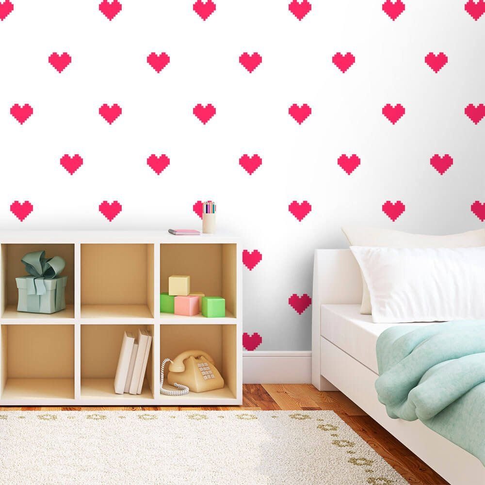 Este modelo, Adesivo de Parede Coração Pixel, pode ser usado em praticamente qualquer superfície lisa, pode ser utilizado para decorar quarto infantil, sala, sala de estar, sala de tv, cozinha, hall de entrada, quarto de casal, bar, espaço gourmet, cabeceira de cama, escritório, banheiro, box de banheiro, etc...