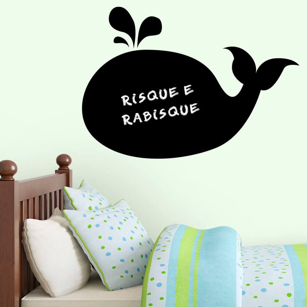 Este modelo, Adesivo de Parede Lousa Baleia, pode ser usado em praticamente qualquer superfície lisa, pode ser utilizado para decorar quarto infantil, sala, sala de estar, sala de tv, cozinha, hall de entrada, quarto de casal, bar, espaço gourmet, cabeceira de cama, escritório, banheiro, box de banheiro, etc...