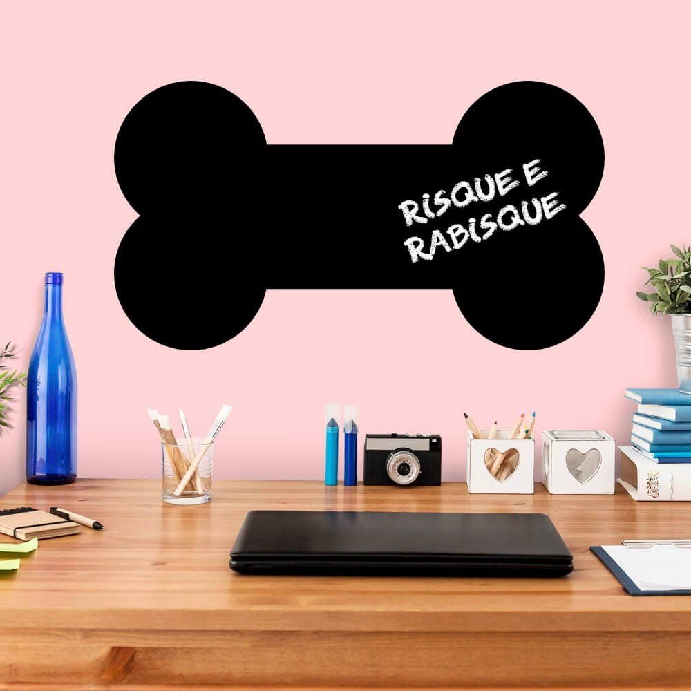 Este modelo, Adesivo de Parede Lousa Osso, pode ser usado em praticamente qualquer superfície lisa, pode ser utilizado para decorar quarto infantil, sala, sala de estar, sala de tv, cozinha, hall de entrada, quarto de casal, bar, espaço gourmet, cabeceira de cama, escritório, banheiro, box de banheiro, etc...