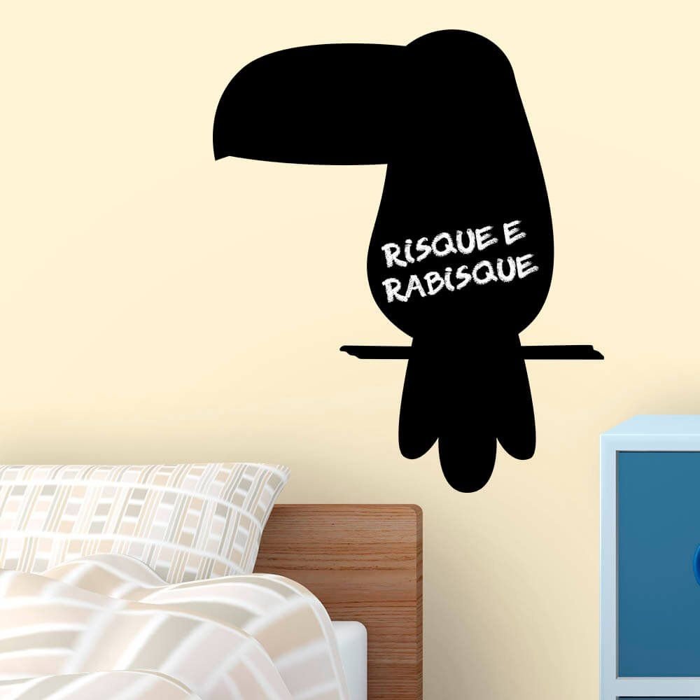 Este modelo, Adesivo de Parede Lousa Tucano, pode ser usado em praticamente qualquer superfície lisa, pode ser utilizado para decorar quarto infantil, sala, sala de estar, sala de tv, cozinha, hall de entrada, quarto de casal, bar, espaço gourmet, cabeceira de cama, escritório, banheiro, box de banheiro, etc...