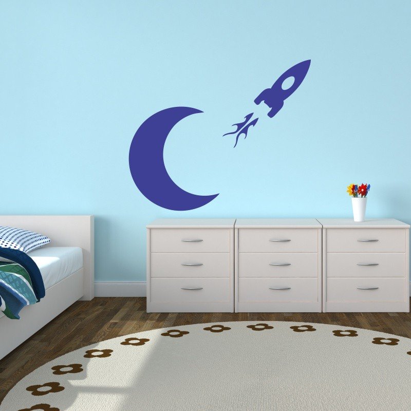 Este modelo, Adesivo de Parede Lua e Foguete, pode ser usado em praticamente qualquer superfície lisa, pode ser utilizado para decorar quarto infantil, sala, sala de estar, sala de tv, cozinha, hall de entrada, quarto de casal, bar, espaço gourmet, cabeceira de cama, escritório, banheiro, box de banheiro, etc...