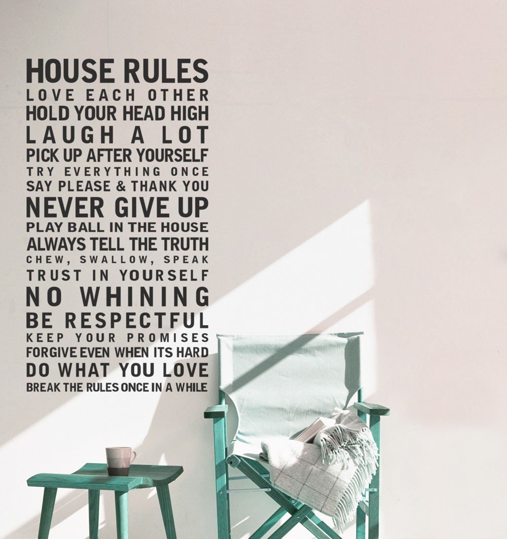 Este modelo, Adesivo de Parede Regras da Casa, pode ser usado em praticamente qualquer superfície lisa, pode ser utilizado para decorar quarto infantil, sala, sala de estar, sala de tv, cozinha, hall de entrada, quarto de casal, bar, espaço gourmet, cabeceira de cama, escritório, banheiro, box de banheiro, etc...
