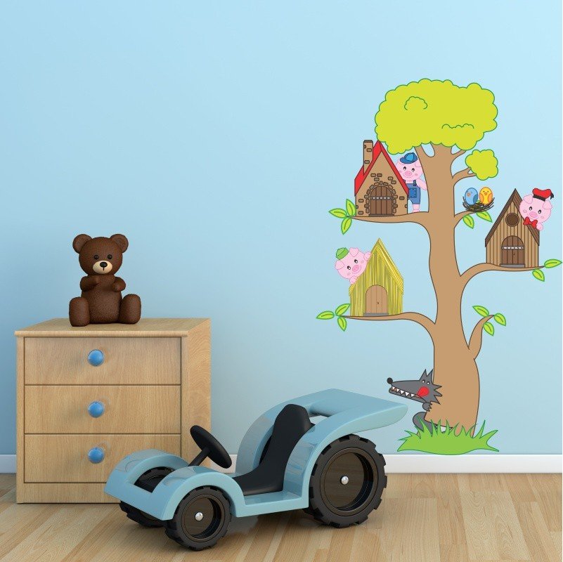Este modelo, Adesivo de Parede Três porquinhos e o lobo, pode ser usado em praticamente qualquer superfície lisa, pode ser utilizado para decorar quarto infantil, sala, sala de estar, sala de tv, cozinha, hall de entrada, quarto de casal, bar, espaço gourmet, cabeceira de cama, escritório, banheiro, box de banheiro, etc...