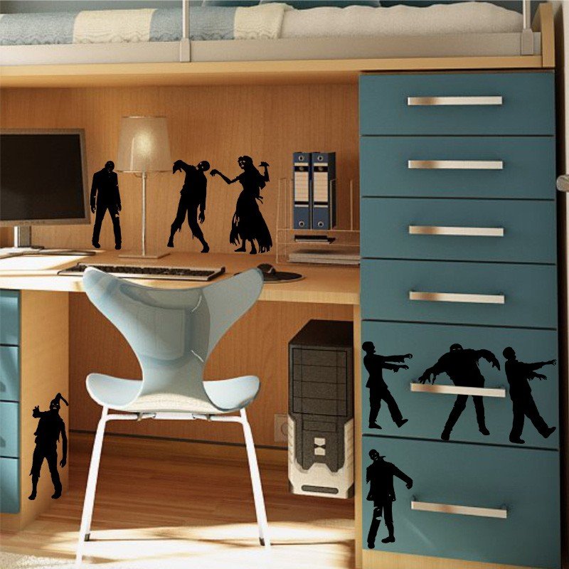 Este modelo, Adesivo de Parede Zumbis, pode ser usado em praticamente qualquer superfície lisa, pode ser utilizado para decorar quarto infantil, sala, sala de estar, sala de tv, cozinha, hall de entrada, quarto de casal, bar, espaço gourmet, cabeceira de cama, escritório, banheiro, box de banheiro, etc...