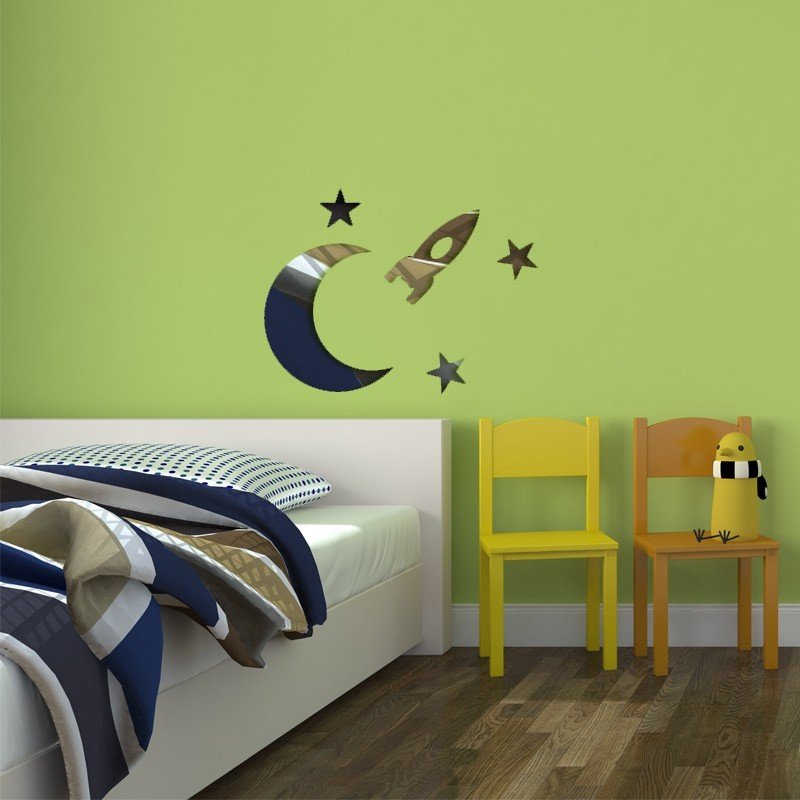 Mude a decoração interior da sua casa deixando-a mais charmosa com o Espelho Decorativo Lua e Foguete .