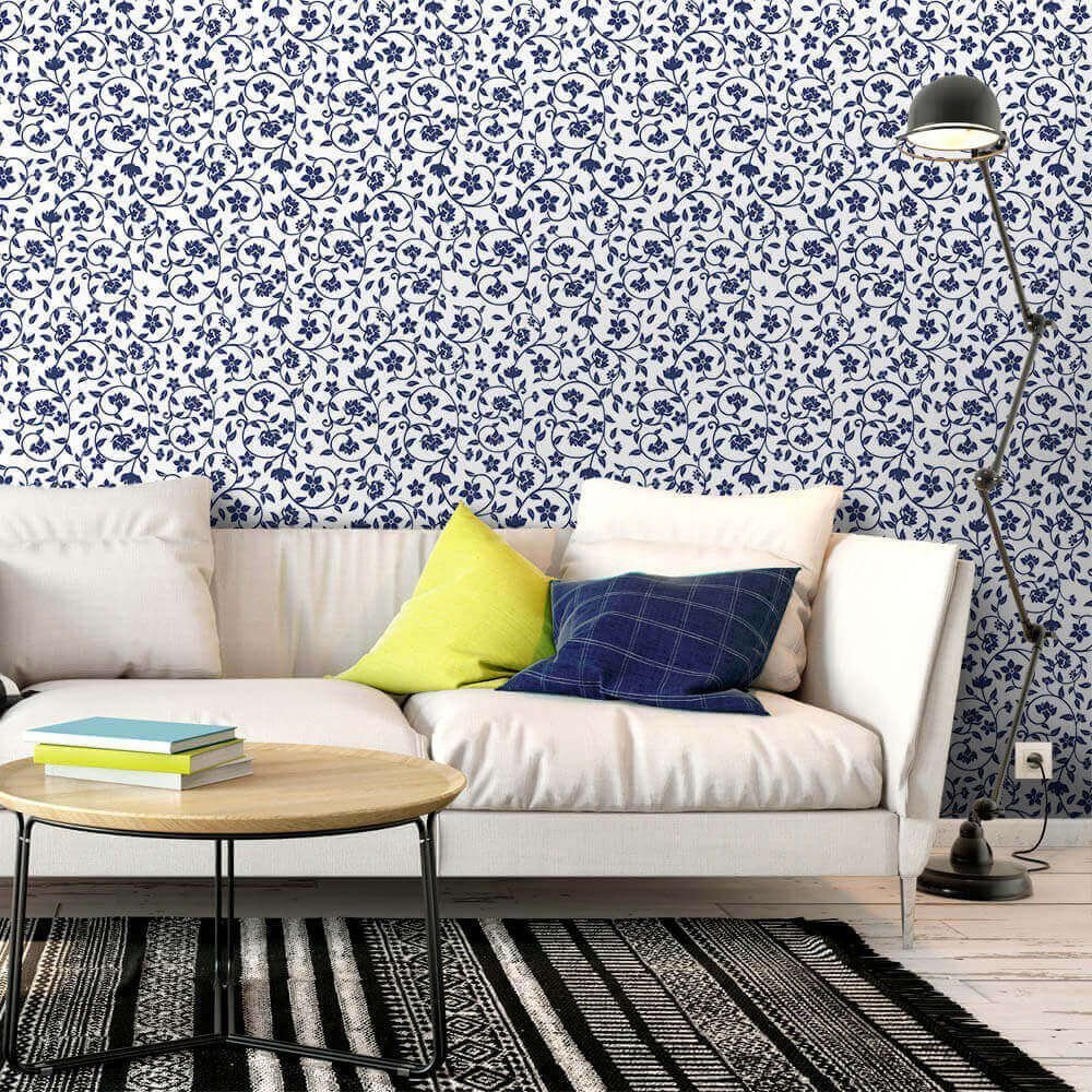 O Papel de Parede Alana Navy é fabricado em adesivo vinil fosco 3M, autocolante e com excelente qualidade de impressão. Não precisando de cola.