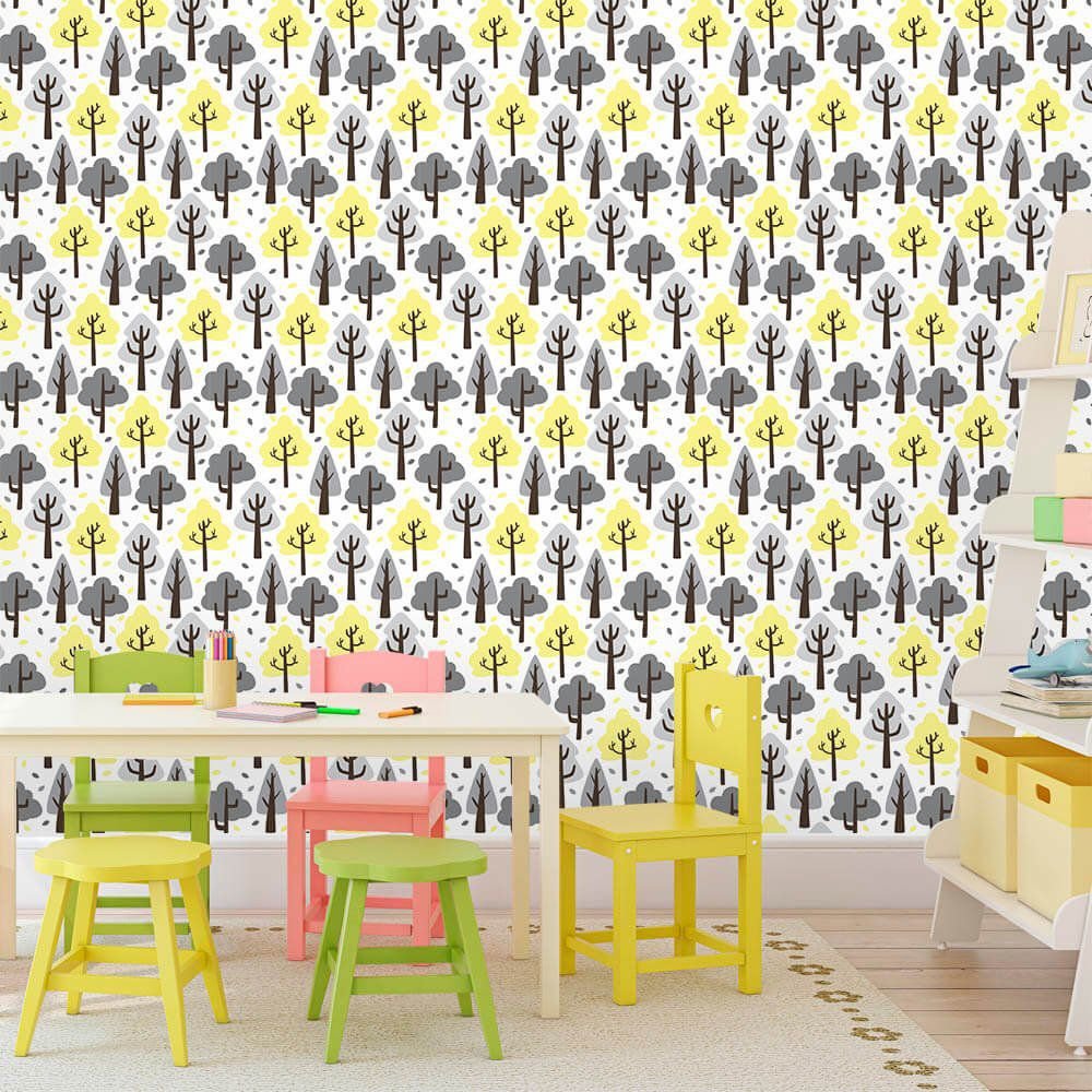 O Papel de Parede Árvores Fofas Clean é fabricado em adesivo vinil fosco 3M, autocolante e com excelente qualidade de impressão. Não precisando de cola.