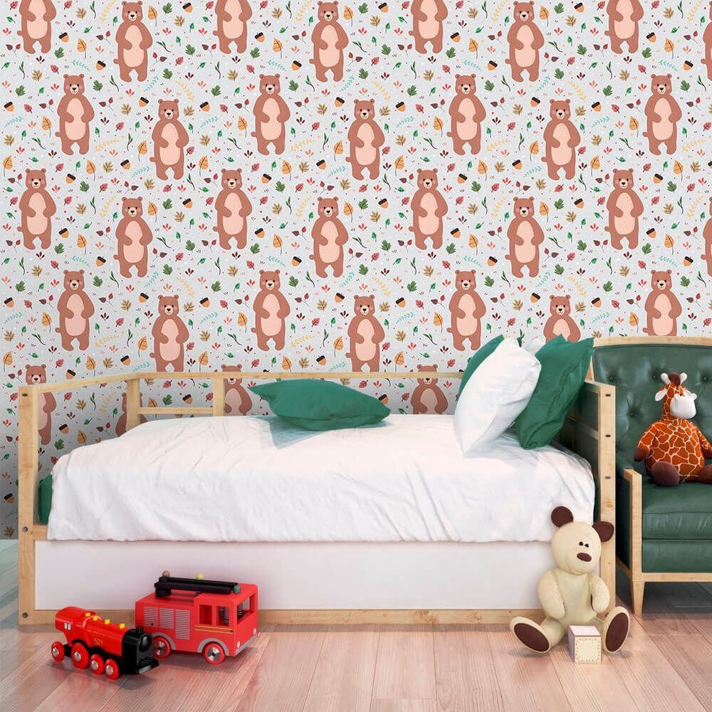 O Papel de Parede Bear Cute Gray é fabricado em adesivo vinil fosco 3M, autocolante e com excelente qualidade de impressão. Não precisando de cola.