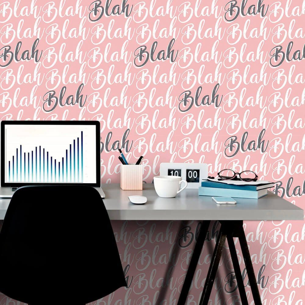O Papel de Parede Blah Blah Sweet é fabricado em adesivo vinil fosco 3M, autocolante e com excelente qualidade de impressão. Não precisando de cola.