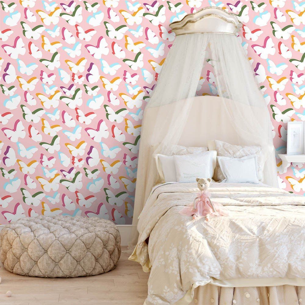 O Papel de Parede Borboletas Coloridas é fabricado em adesivo vinil fosco 3M, autocolante e com excelente qualidade de impressão. Não precisando de cola.