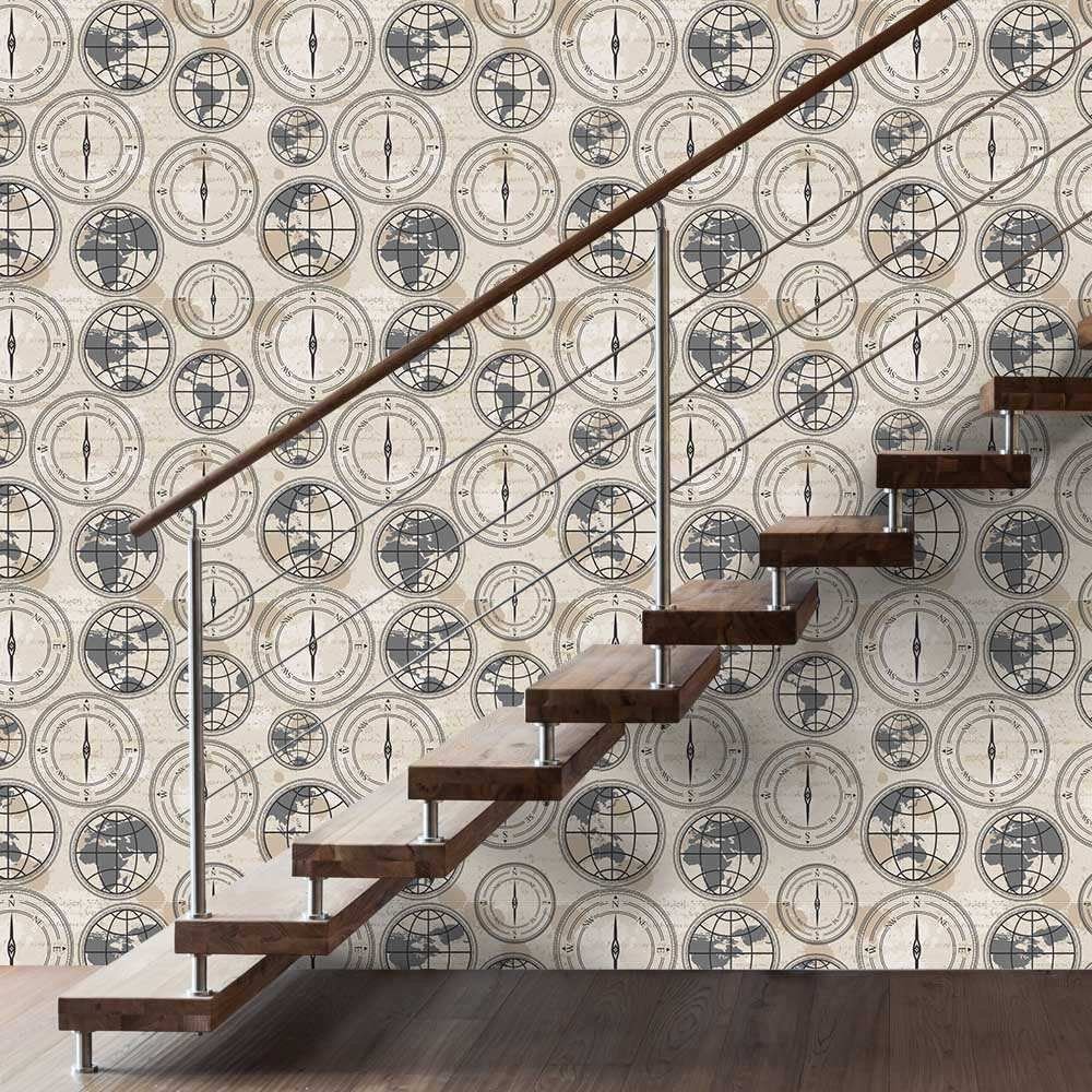 O Papel de Parede Bússola é fabricado em adesivo vinil fosco 3M, autocolante e com excelente qualidade de impressão. Não precisando de cola.