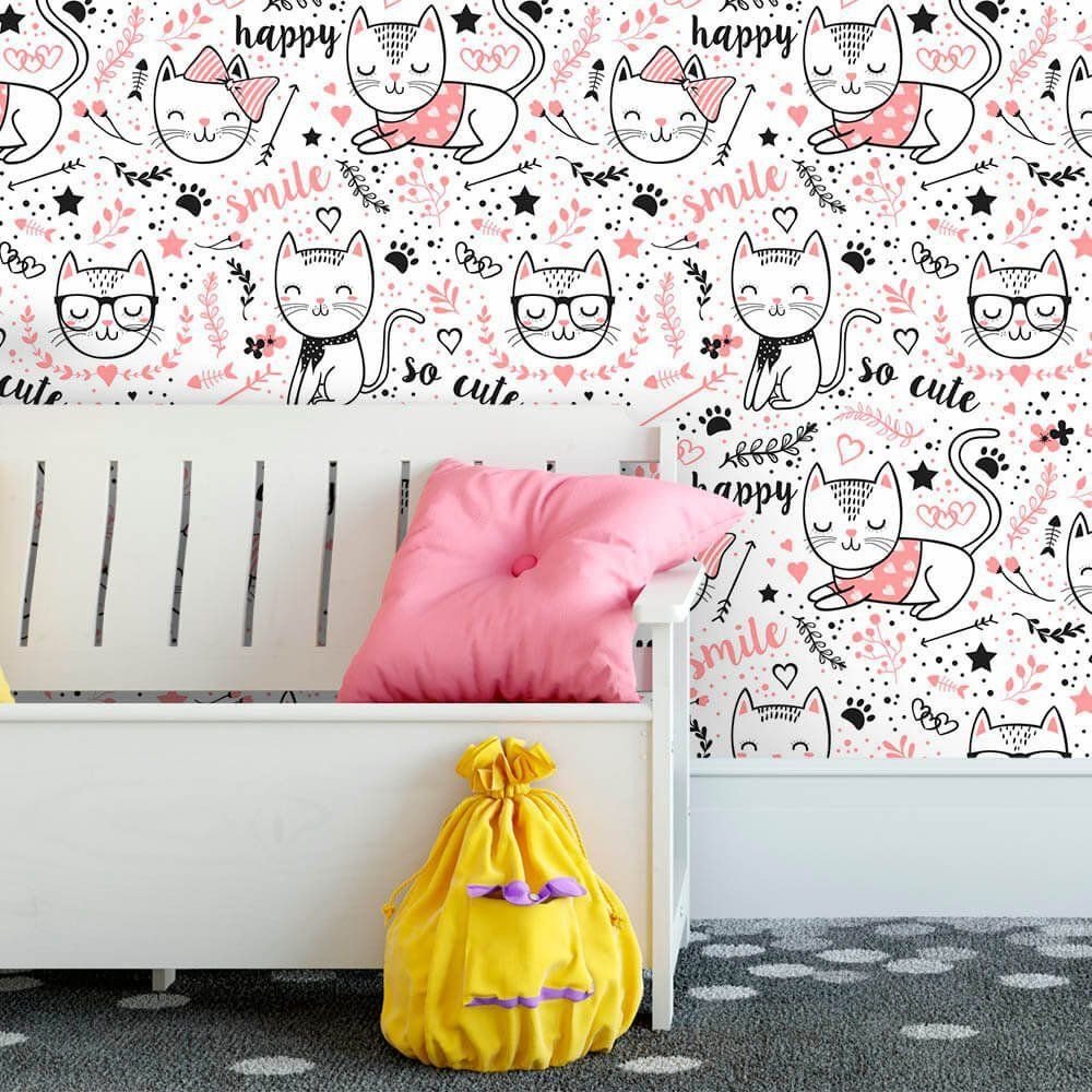 O Papel de Parede Cats Ilustra é fabricado em adesivo vinil fosco 3M, autocolante e com excelente qualidade de impressão. Não precisando de cola.