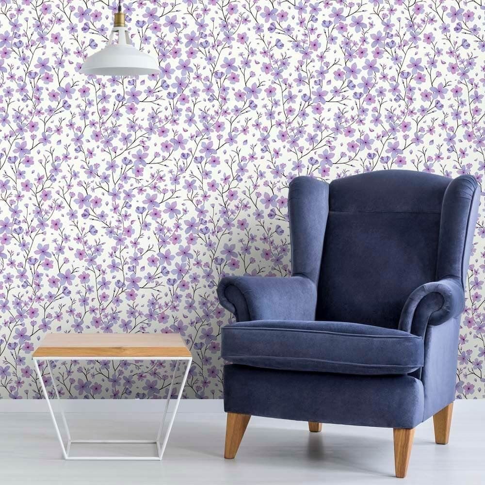 O Papel de Parede Cerejeira Purple é fabricado em adesivo vinil fosco 3M, autocolante e com excelente qualidade de impressão. Não precisando de cola.