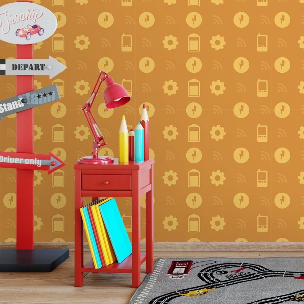 O Papel de Parede Configurações Laranja é fabricado em adesivo vinil fosco 3M, autocolante e com excelente qualidade de impressão. Não precisando de cola.