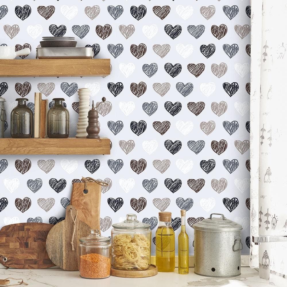 PAPEL DE PAREDE CORAÇÕES RISCADOS