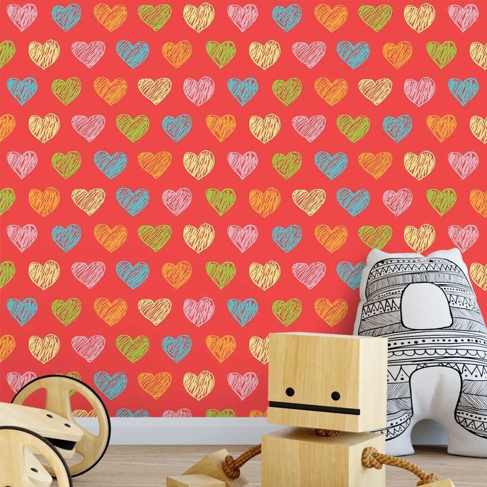 O Papel de Parede Corações Candy é fabricado em adesivo vinil fosco 3M, autocolante e com excelente qualidade de impressão. Não precisando de cola.