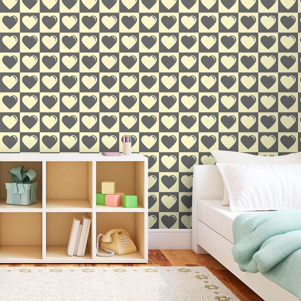 PAPEL DE PAREDE CORAÇÃO XADREZ