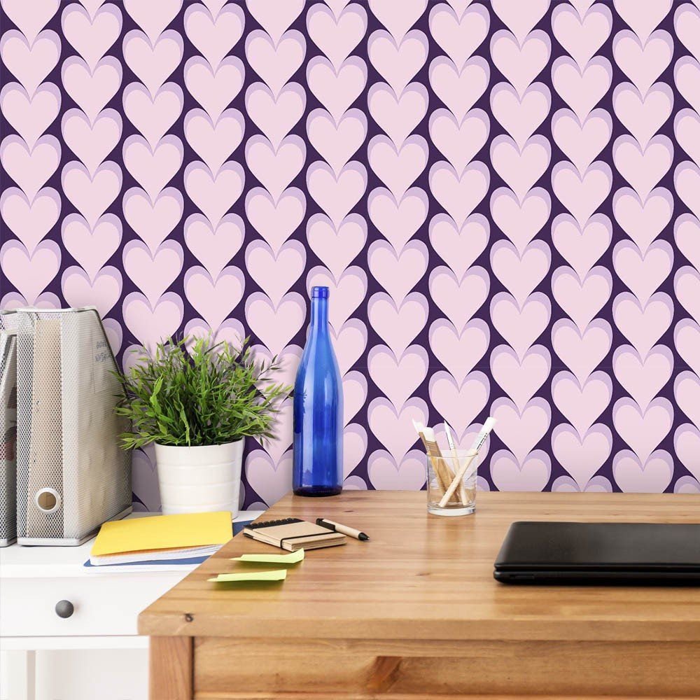 O Papel de Parede Corações Gride é fabricado em adesivo vinil fosco 3M, autocolante e com excelente qualidade de impressão. Não precisando de cola.