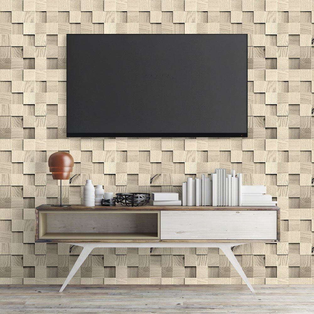 PAPEL DE PAREDE MADEIRA CUBOS CLEAN