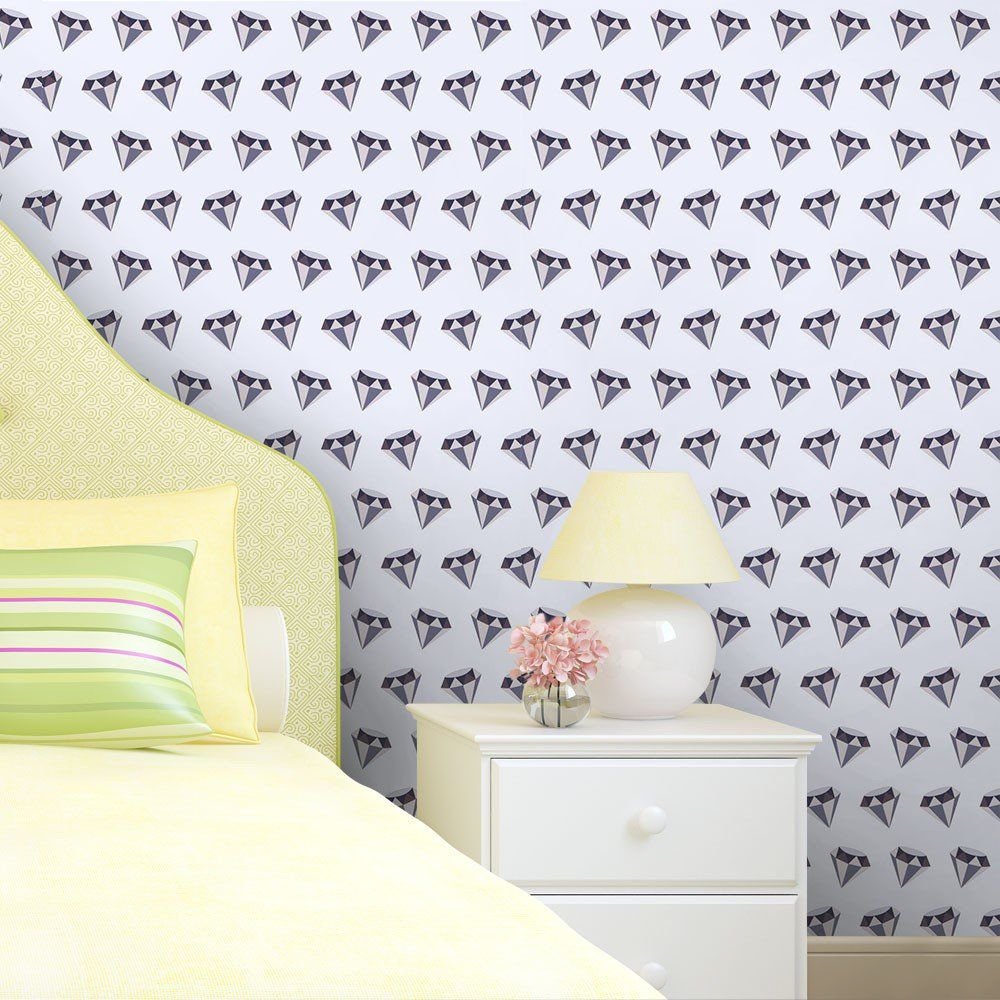 O Papel de Parede Diamante Lilás é fabricado em adesivo vinil fosco 3M, autocolante e com excelente qualidade de impressão. Não precisando de cola.