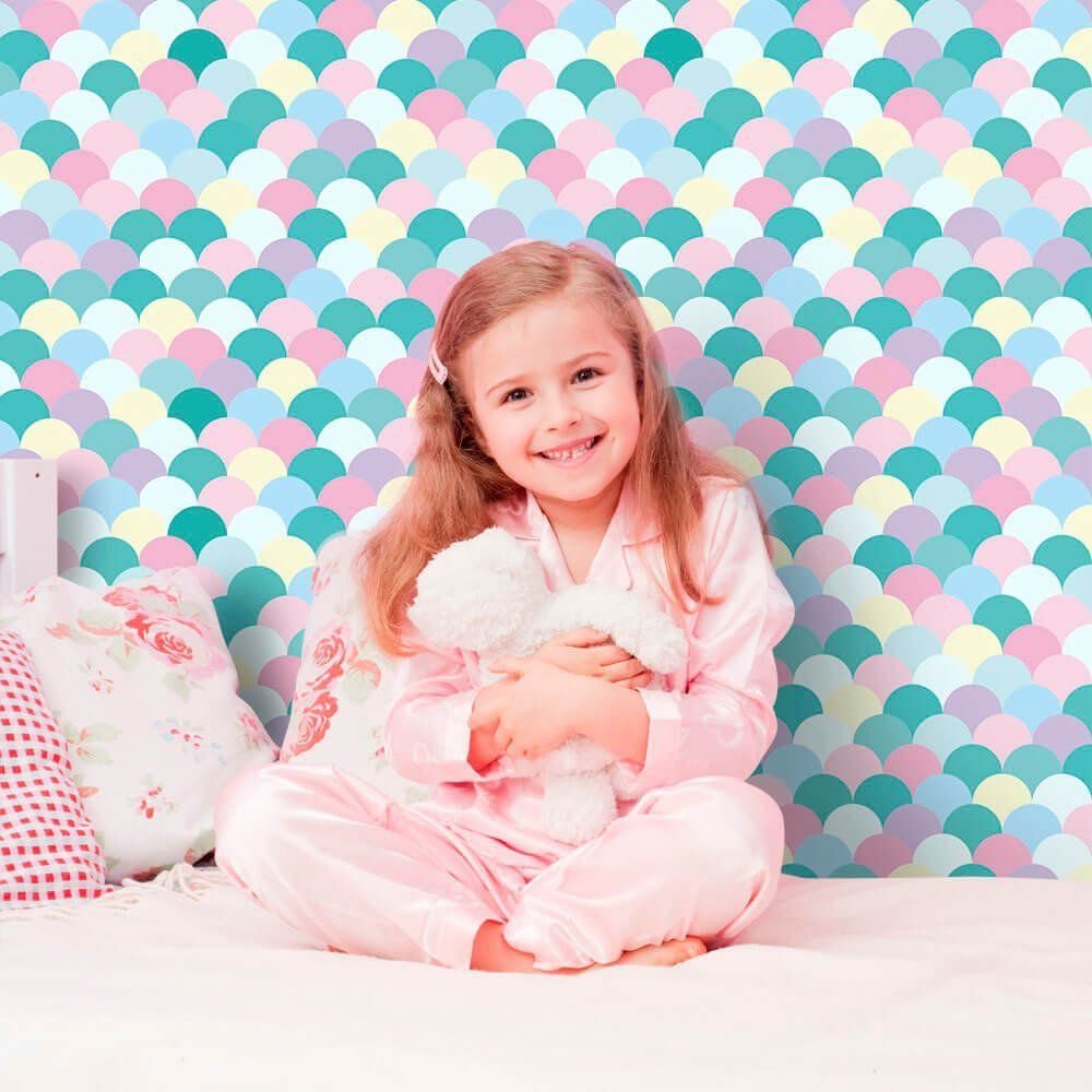 O Papel de Parede Escamas Unicórnio é fabricado em adesivo vinil fosco 3M, autocolante e com excelente qualidade de impressão. Não precisando de cola.