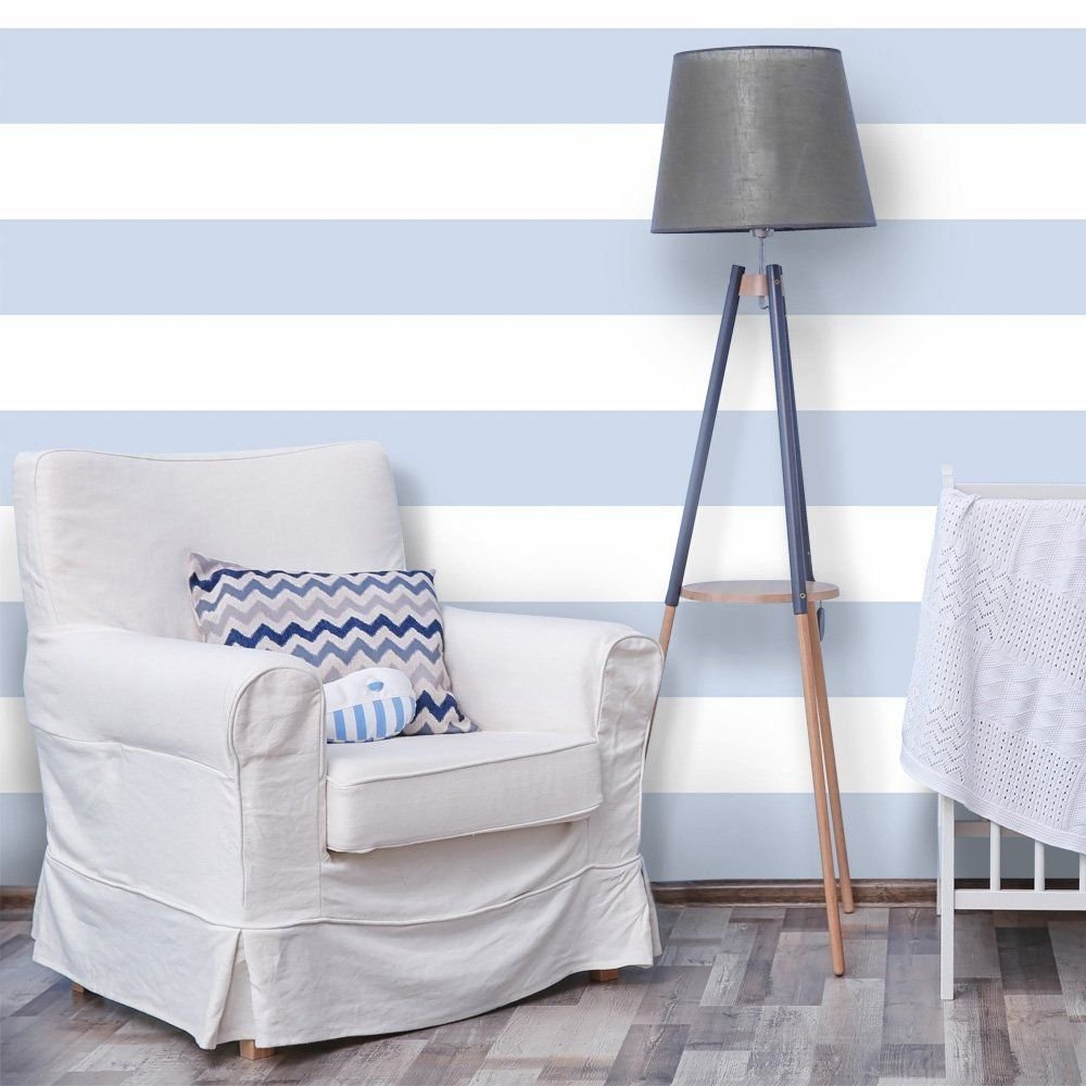O Papel de Parede Faixas Tulio é fabricado em adesivo vinil fosco 3M, autocolante e com excelente qualidade de impressão. Não precisando de cola.