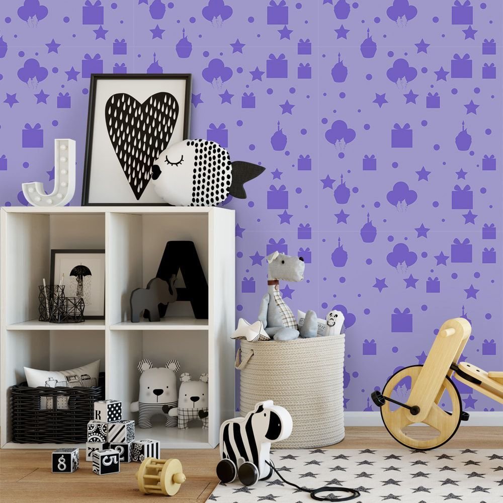 O Papel de Parede Festa Roxa é fabricado em adesivo vinil fosco 3M, autocolante e com excelente qualidade de impressão. Não precisando de cola.