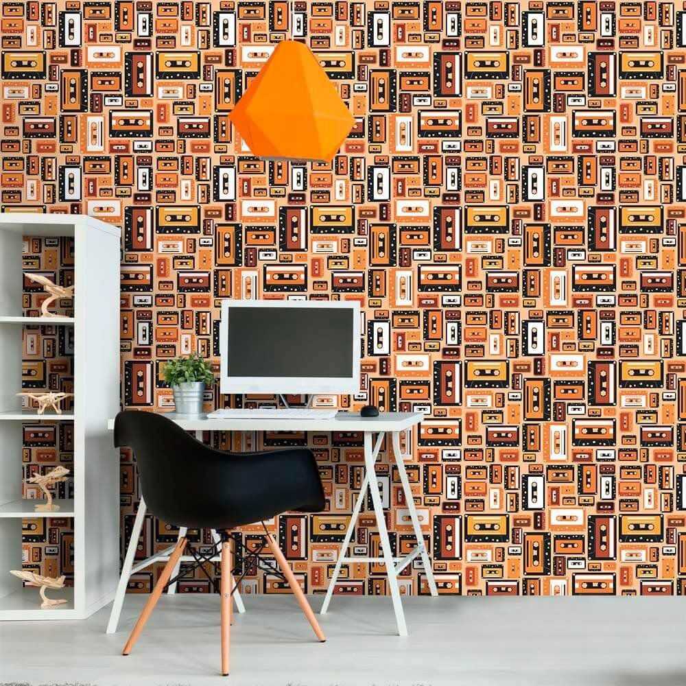 O Papel de Parede Fitas cassete é fabricado em adesivo vinil fosco 3M, autocolante e com excelente qualidade de impressão. Não precisando de cola.