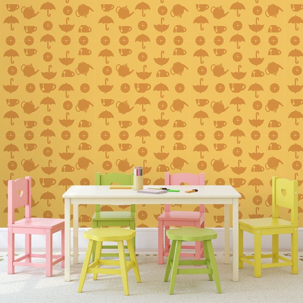 O Papel de Parede Hora do Chá Orange é fabricado em adesivo vinil fosco 3M, autocolante e com excelente qualidade de impressão. Não precisando de cola.