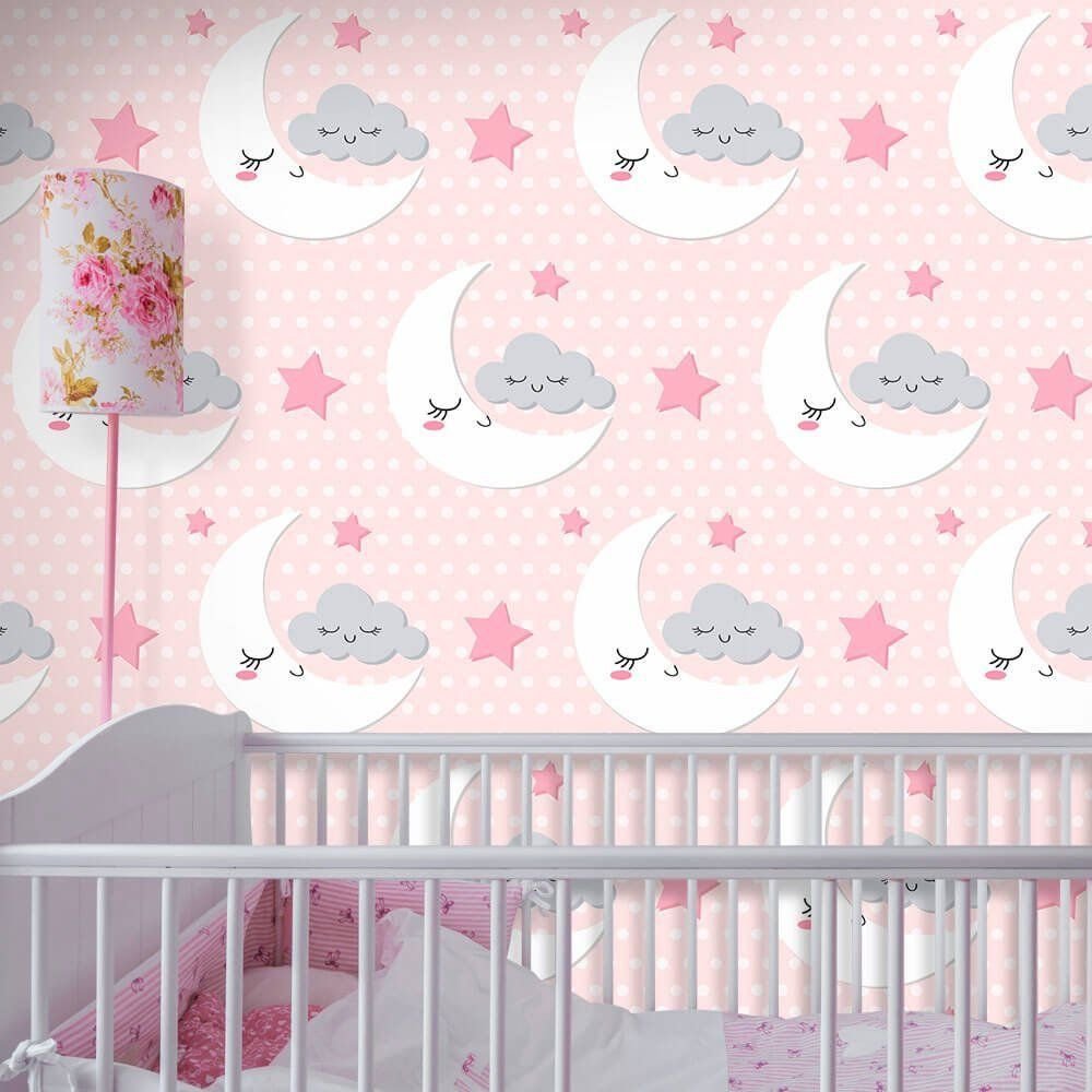 O Papel de Parede Lua Fofa é fabricado em adesivo vinil fosco 3M, autocolante e com excelente qualidade de impressão. Não precisando de cola.