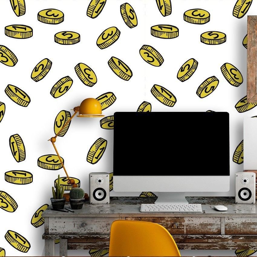 O Papel de Parede Moedas é fabricado em adesivo vinil fosco 3M, autocolante e com excelente qualidade de impressão. Não precisando de cola.