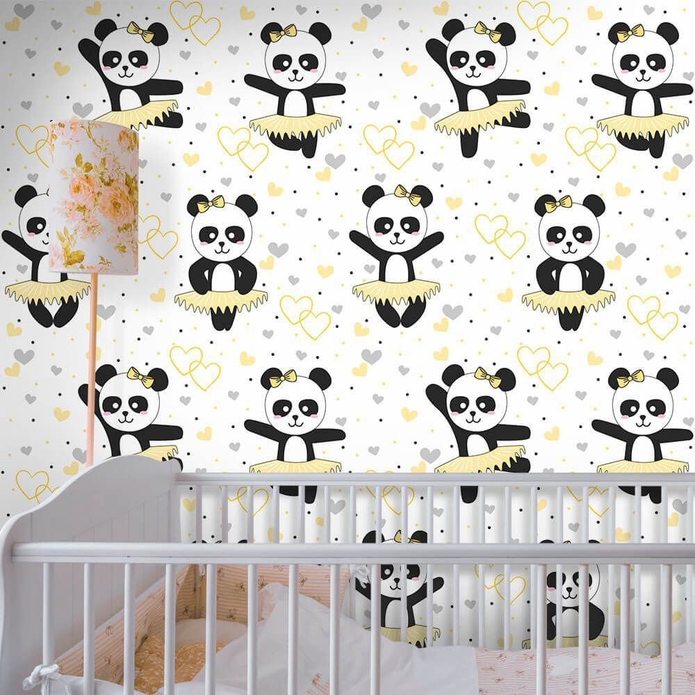 O Papel de Parede Panda Ballet Clean é fabricado em adesivo vinil fosco 3M, autocolante e com excelente qualidade de impressão. Não precisando de cola.