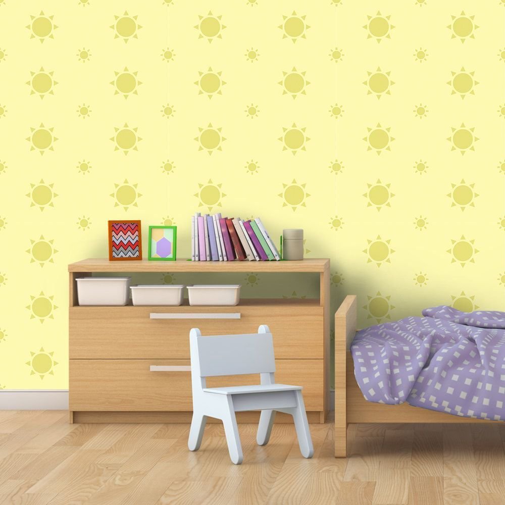 O Papel de Parede Solzinho é fabricado em adesivo vinil fosco 3M, autocolante e com excelente qualidade de impressão. Não precisando de cola.