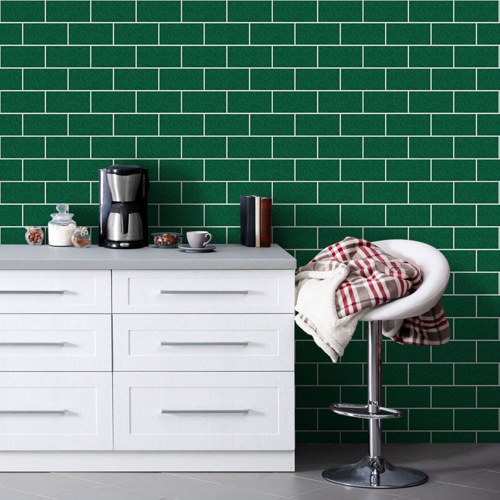 O Papel de Parede Tijolo Ret Verde é fabricado em adesivo vinil fosco 3M, autocolante e com excelente qualidade de impressão. Não precisando de cola.