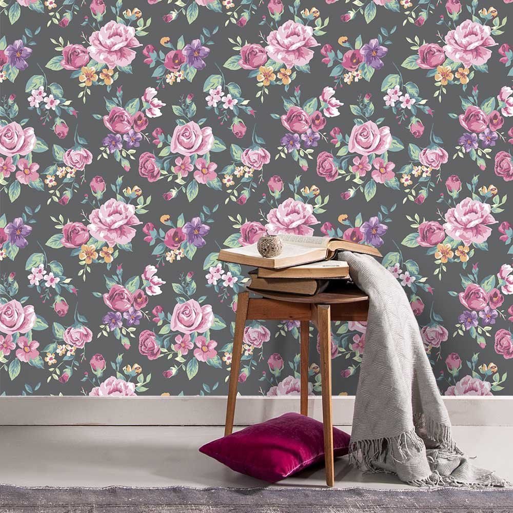 PAPEL DE PAREDE FLORA GRAY