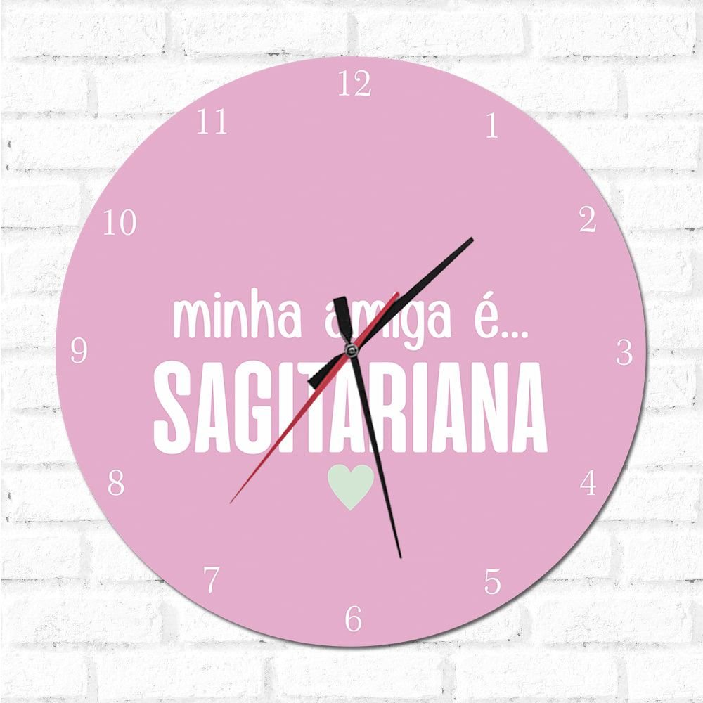 O Relógio Decorativo Minha Amiga é Sagitariana é uma ótima opção para decorar sua casa, além de ser um item funcional, é também um item decorativo. E pode ser colocado em qualquer ambiente.