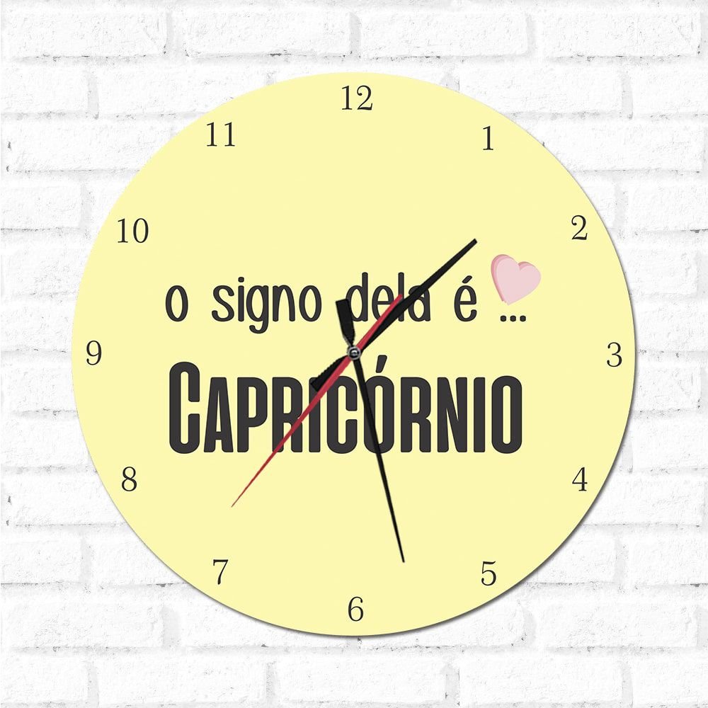 O Relógio Decorativo O Signo dela é Capricórnio é uma ótima opção para decorar sua casa, além de ser um item funcional, é também um item decorativo. E pode ser colocado em qualquer ambiente.