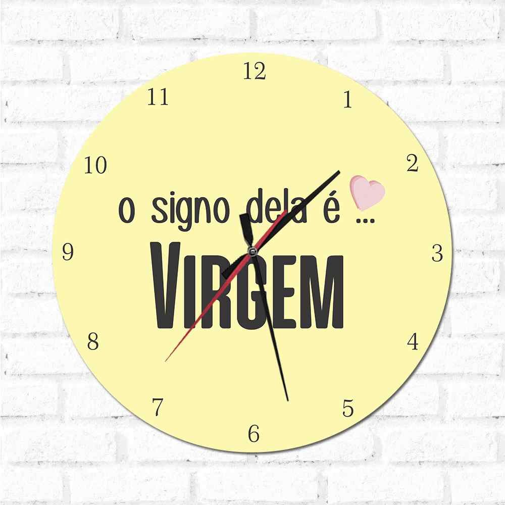 O Relógio O Signo dela é Virgem é uma ótima opção para decorar sua casa, além de ser um item funcional, é também um item decorativo. E pode ser colocado em qualquer ambiente.